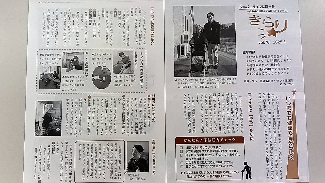 隅田クラブにて実施している「短期集中サービス」(橋本市委託事業)について「橋本市広報3月号」に掲載されましたのでご紹介させて頂きます!詳しくは橋本市広報3月号をご覧ください。